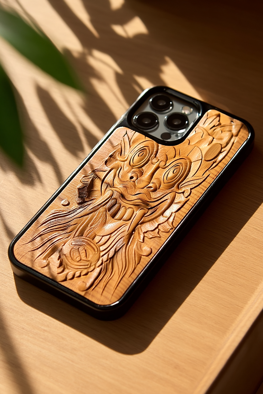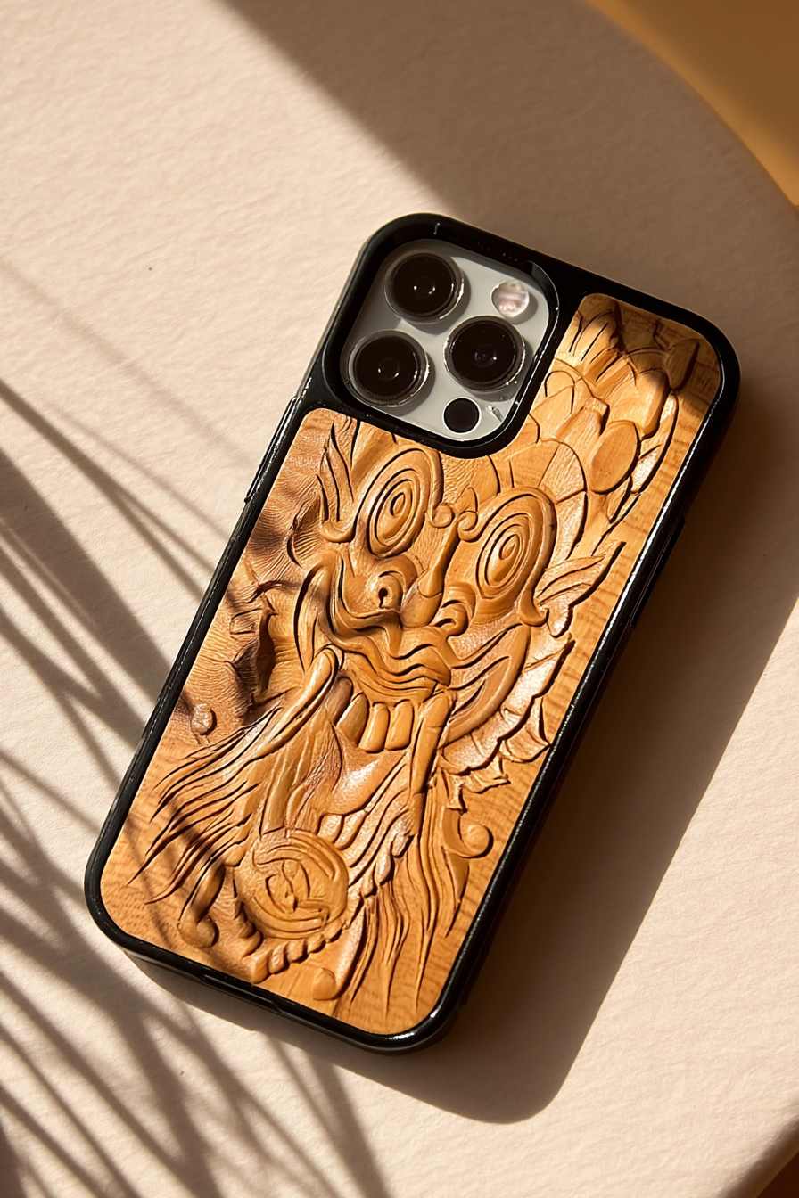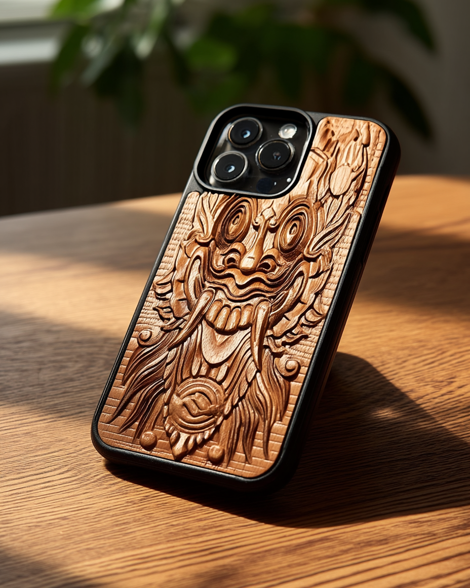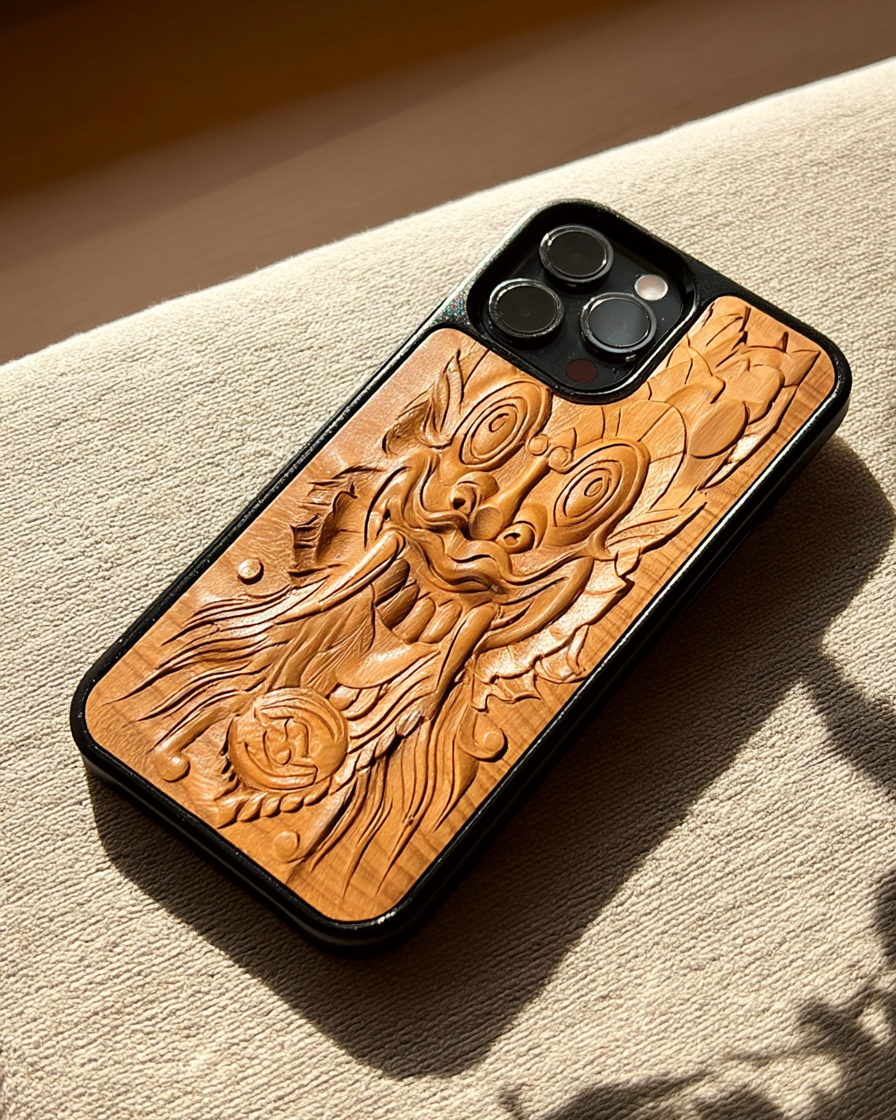 Gefertigt aus fein versiegeltem Teakholz und eingefasst in ein schlankes TPU-Cover.